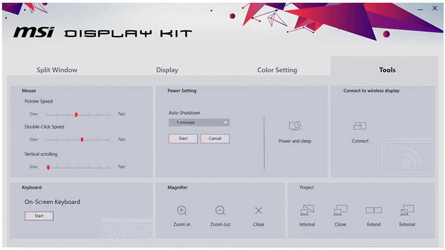 MSI’ın özel Display Kit yazılımı günlük kullanım alışkanlıklarınıza uygun olarak hem görüntülerin, hem de metinlerin en doğru şekilde üretilmesi için renk ve kullanım modları sunar.