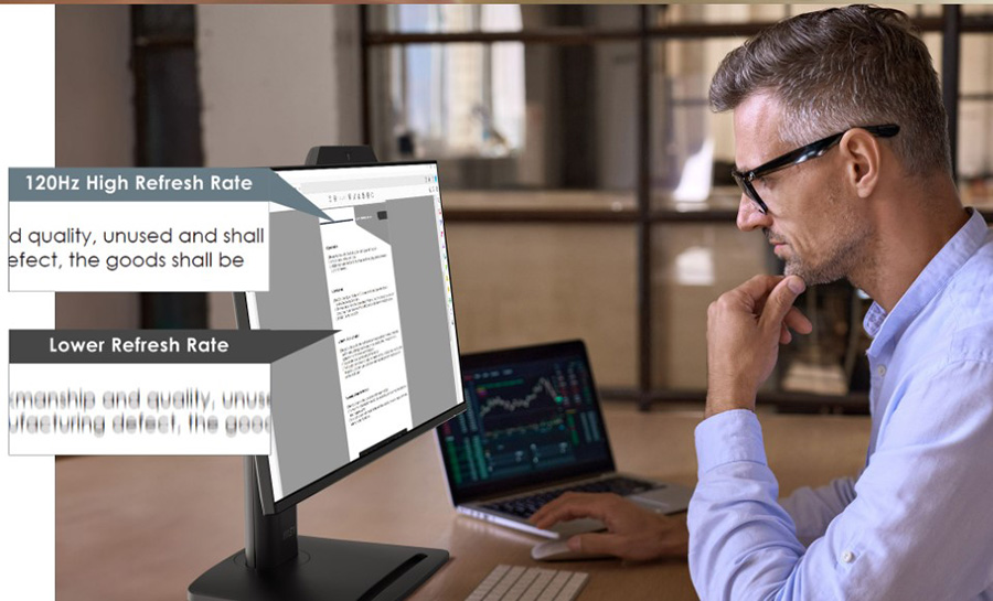 Online konferanslarda akıcı görüntü ve müşterinize mükemmel sunumlar için 120Hz taeleme oranı. VESA araştırmalarına göre kullanıcıların %95’i, normal kullanımda “titreşmesiz” görüntü için standart tazeleme oranını 85 Hz olarak kabul ediyor.