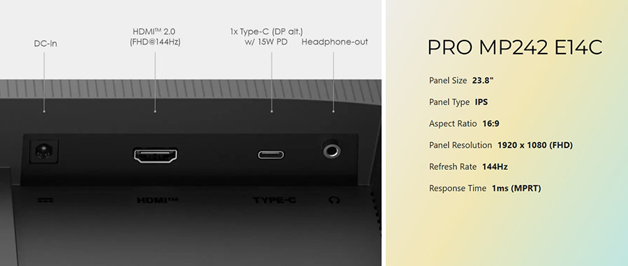 PRO MP242 E14C monitör 144Hz tazeleme hızı ve Adaptive-Sync özelliği ile akıcı bir oyun ve çalışma deneyimi sunar. Ergonomik tasarımı, PerfectEdge ekranı ve HDR Ready özelliği sayesinde hem göz konforu, hem de oyun kapsayıcılığı açısından mükemmel bir çözümdür.