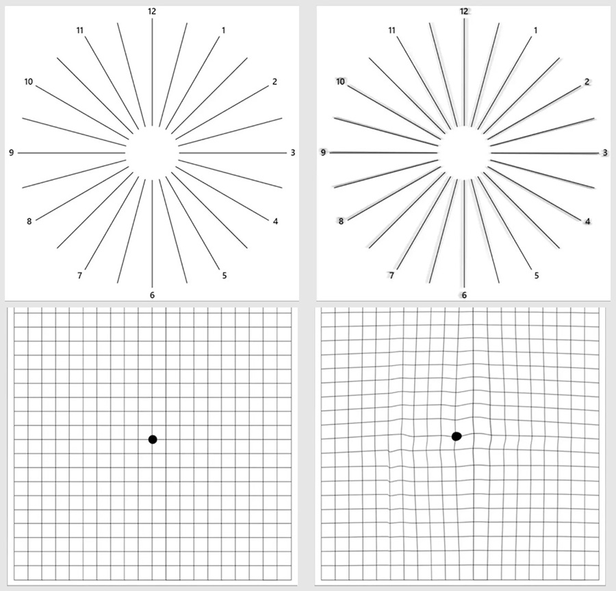 MSI, Amsler Grid testini yaparken herhangi bir çizginin bulanık, bozuk veya çarpık göründüğünü farkettiğiniz anda 20 dakika mola vermenizi tavsiye ediyor.