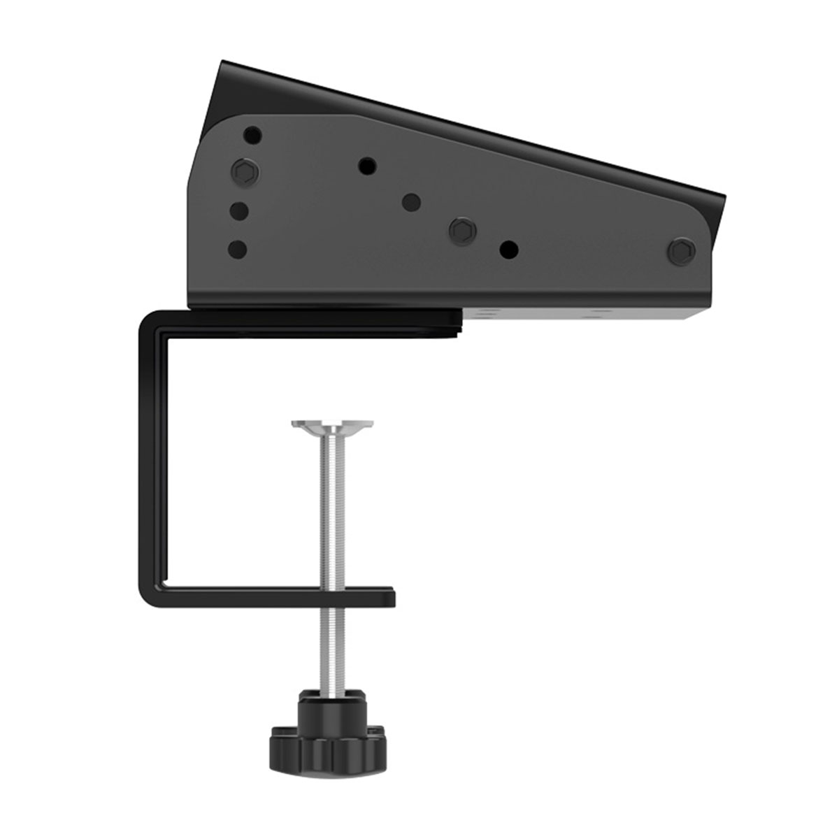 Çift montaj kelepçesi sayesinde gelişmiş stabilite sunar. Ayarlanabilir braket paneli, 4 kademeli eğim ayarı ile maksimum 15° açıya kadar ayarlanabilir. Çoklu delik yapısına sahip montaj tabanı, farklı kurulum senaryoları için esnek montaj seçenekleri sağlar. EVA koruyucu pedler, çizilmeye ve aşınmaya karşı dayanıklı yapı sunarak masa yüzeyini korur. 7 cm’ye kadar masa kalınlıklarıyla uyumlu masaüstü kelepçesi, kilitleme vidalı yapısı sayesinde alet gerektirmeden güvenli ve sağlam sabitleme imkânı sunar. Braket montaj ölçüleri panel tabana takılı halde 161 × 155 × 75 mm’dir. Kelepçe ünitesi ise tamamen sıkıldığında yaklaşık 35 × 82 × 115 mm ölçülerindedir.